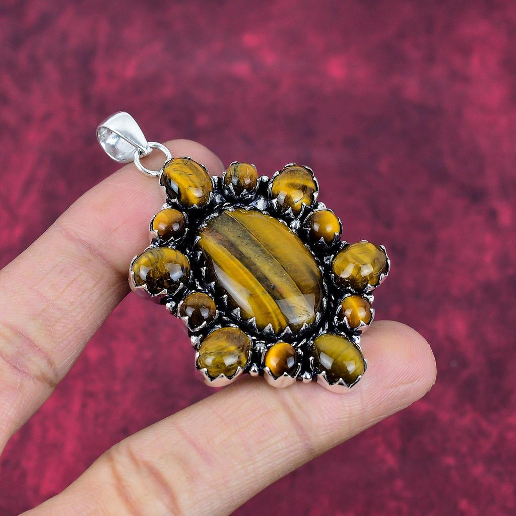 Pingente de prata esterlina sólida 925 olho de tigre, pingente de pedra preciosa feito à mão, presente para a mãe, joias antigas