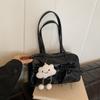 Shoulder Bag for Women Lightweight PU Handbag with Cloud Charm & Bow Front Pocket Large Capacity Zipper for Daily Commute