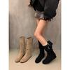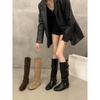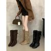 Botas de Salto Alto Retro Camurça Preto Botas Longas Femininas Botas Western Outono e Inverno Lã Quente Botas Botas de Cavaleiro