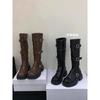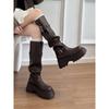 Botas retrô de salto alto empilhadas marrons botas longas de cavaleiro sapatos femininos 2024 novo outono e inverno cano médio cano de calça botas longas