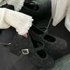 Sapatos femininos de veludo francês com salto grosso, outono e inverno, novos, com fivela de uma tira, bico quadrado retrô, boca leve, sapatos Mary Jane