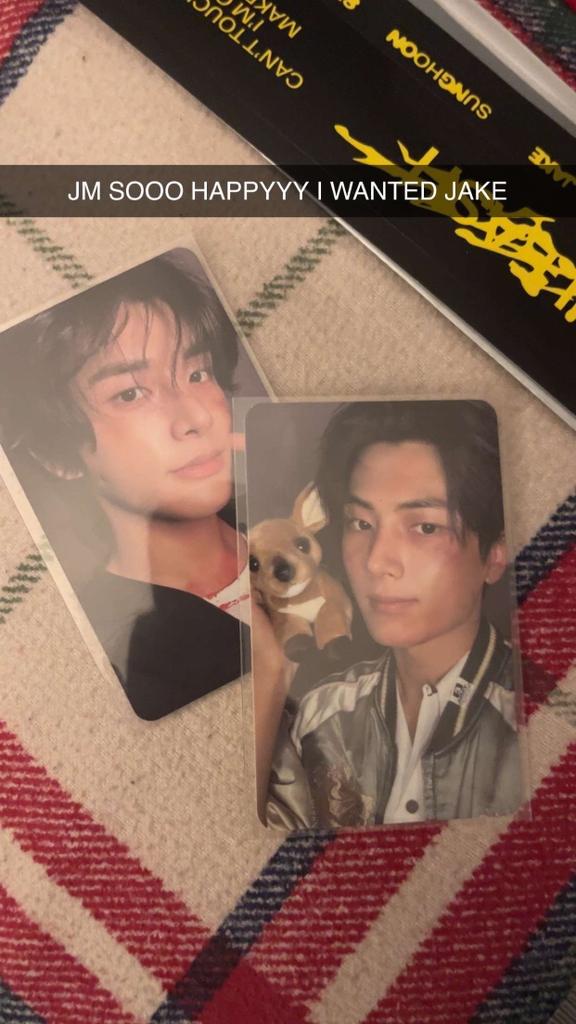 chegaram super bem e com lomocards de todos (menos do Heeseung 😓) também um pouco mais tarde do que o esperado, mas tudo ótimo. muito feliz porque me tocou meu bias, Jake 😭😭😭