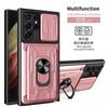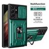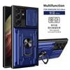 Capa com Janela Deslizante para Câmera, Porta-Cartões, Suporte Anel para Samsung Galaxy S25 S24 Ultra S23 S22 S21 S20 Plus, Proteção Magnética Pesada, Capa com Suporte