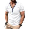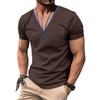 Summer Men's T-shirt, Casual V-neck Henry Shirt, Slim T-shirt, Short-sleeved Top for Men