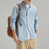 Camisa Masculina Retro Lavada Jeans Manga Longa - Primavera Casual Cor Sólida com Lapela Fina