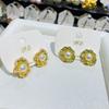 Geometric Stainless Steel Chunky Twist Metal Earrings Trendy Pearl Flower Stud Earring Everyday Statement Jewelry for Her