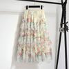 DIMANAF 2025 Summer Women New Skirts Elastic Waist Flower Pleated Mesh Elegant Skirts