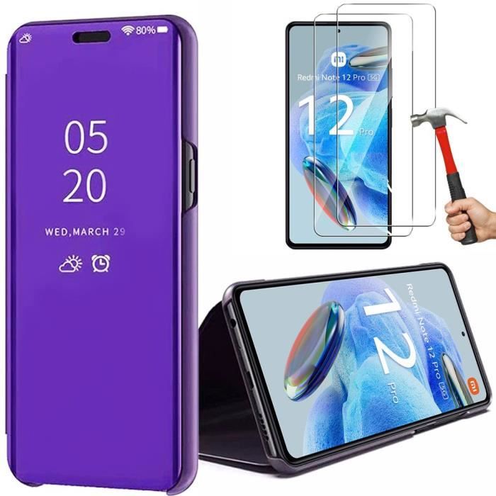 Coque pour Xiaomi Redmi Note 12 Pro 5G - Violet - Effet Miroir - Fenêtre Translucide - 2 Verres Trempés