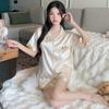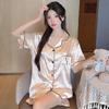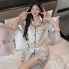 Summer 2 Piece Women Set Short Sleeve black tops and shorts Pajamas Woman Silk Fashion elegant Luxury Satin Sleepwear Polka dot printing Pajama Set