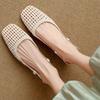 Sandálias Baotou Femininas Verão Bico Quadrado Vazado Raso Respirável Fivela de Uma Linha Solado Salto Sapatos