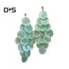 1 par de brincos longos de várias camadas, com design de agulha de metal translúcido e borla de cristal artificial