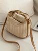 Bolsa de Mão Pequena de Palha de Verão Bolsa de Ombro da Moda Bolsa Balde Tecida Bolsa Transversal Casual de Praia Beira-Mar Bolsa Tote com Alça para Meninas