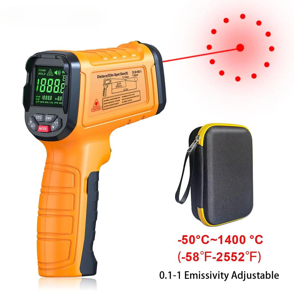L.AOL.AU Professional Infrared Thermometer Measuring up to 1400°C with 13 Laser Points Targeting Non- Contact Digital Pyrometer IR Temperature Gun High Temp Alarm, Emmissivity Adjustable, with Average Value Difference Function/ 9 Groups History Data RecordsDT-1000:-50°C-980°C