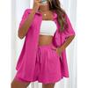 Fashion Black Short Sleeve Shirt and Shorts Two Piece Sets Women Summer Cotton Linen Casual Home 2 Piece Sets Women Outfit