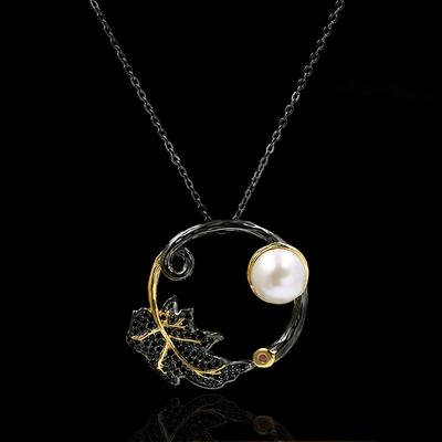 Colar Pingente Gótico Retrô Preto Dourado Pérola de Água Doce Feminino Colar de Corrente Curta Joias Italianas
