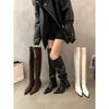Large tube pleated stacking boots women's 2024 new boots autumn and winter women's boots French pointed boots thick heel boots