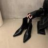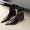 Botas pequenas coreanas de couro marrom com bico fino, botas curtas femininas 2024, novas, estilosas, versáteis, de salto grosso estrangeiro, botas finas populares