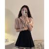 2025 Women's Summer College-Style Navy Collar Puff Sleeve Shirt & High Waist Pleated Skirt Two-Piece Set