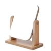 A desk mirror with a wooden stand that has a nice natural wood texture.