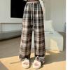 Calças Xadrez Retrô para Mulheres na Primavera e Outono Novas Calças de Cintura Alta Drapeadas de Perna Reta Calças Soltas Casuais de Perna Larga