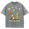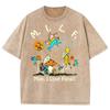 Fungal Plant Print Women's Wash T-Shirt Loose Couple Oversized Short Sleeve Spoof Design Fashion Top Summer