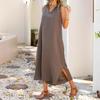 Novo Vestido Casual Solto Sem Mangas com Decote em V Feminino de Primavera e Verão