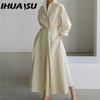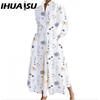 IHUASU Vestidos Casuais de Manga Comprida com Gola Polo Moda Feminina Primavera Outono