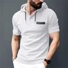 Verão Nova Camisa Casual Masculina de Manga Curta com Capuz e Gola Alta
