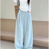 Calças Nuvem de Mousse de Leite Estilo Preguiçoso para Mulheres Primavera Soltas Slim Cordão Casual Versátil Chão Pernas Largas