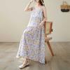 DIMANAF Plus Size Dress Summer Women Vintage Linen Elegant Style Sleeveless Floral Loose New Long Dress 8022
