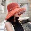 Chapéu Balde Feminino de Verão Dupla Face Versão Coreana Padrão de Malha Chapéu Pote com Botão Chapéu Protetor Solar para Exterior