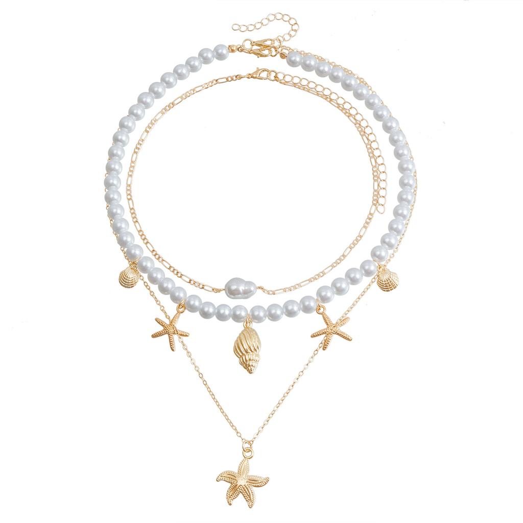 Accessories Bohemian Beach Beaded Necklace Pearl Starfish Shell Vintage Holiday Necklace