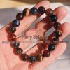 Pulseira de Olho de Tigre Tricolor e Pedra Olho de Águia para Homens e Mulheres, Pedras Naturais Vermelhas, Amarelas e Azuis de 8-14mm com Cristal de Madeira.