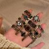 Coreia Vintage Colorido Pedra Metálica Corrente Trendy Geometria Hit Anéis Conjunto para Mulheres Meninas Jóias