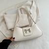 Bolsa de ombro com laço simples e moderno com textura suave para mulheres na primavera e no verão, nova bolsa de axila Crescent Bag