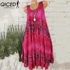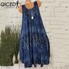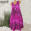 QICED Vestido Feminino de Verão Sem Mangas com Estampa Floral e Decote Redondo