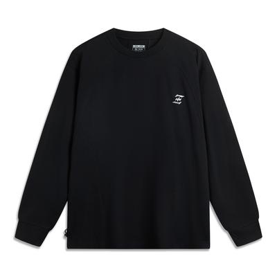 Li Ning Série Estilo de Vida Esportivo Letra Gola Redonda Seda Gelo Secagem Rápida Confortável Respirável Solto Manga Longa Camiseta Tops Unissex Preto AHSV279-1