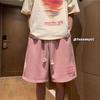 Waffle Grid Letter Print Casual Five-Point Pants Summer Men Korean Style Loose Versatile Student Sport Shorts Trendy