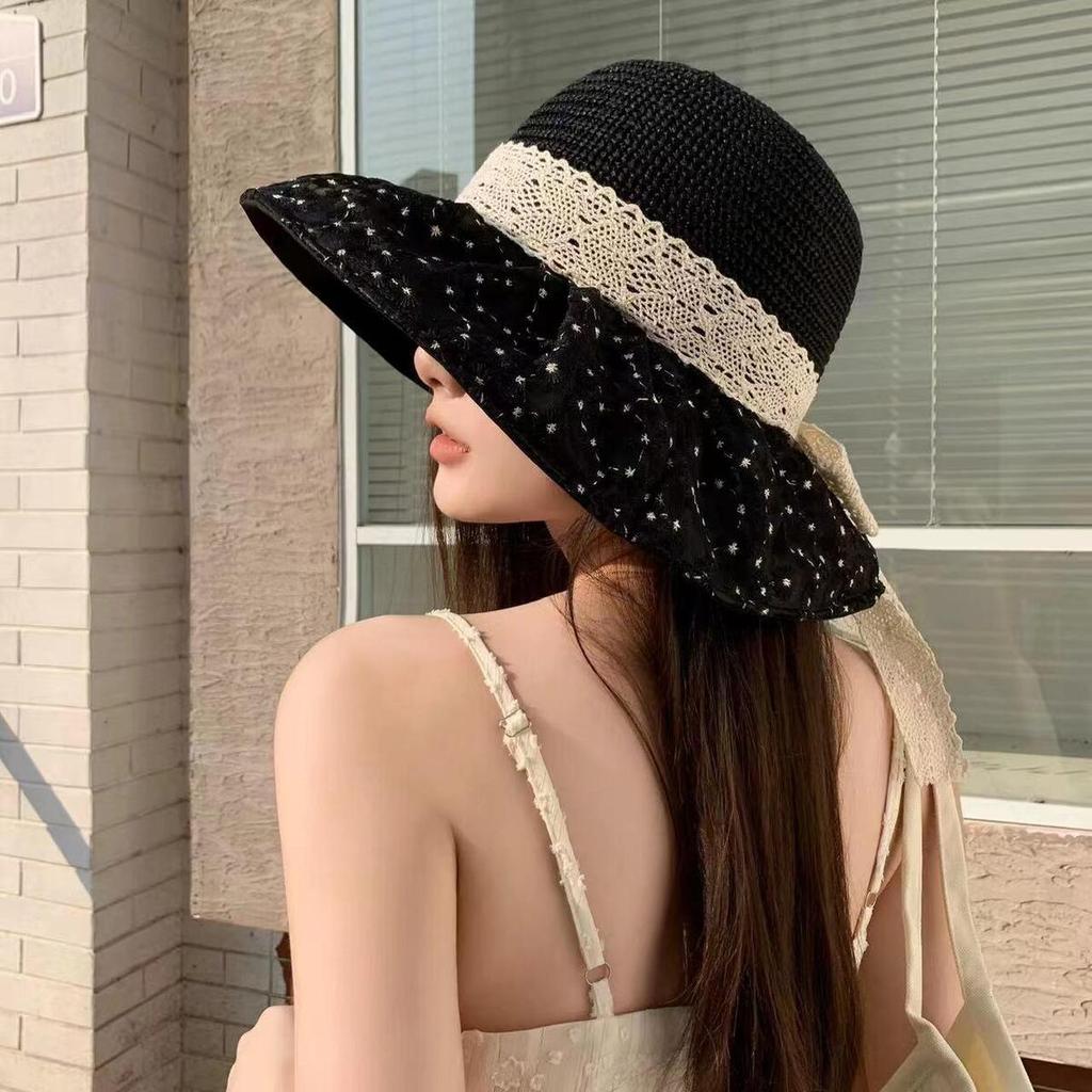 Mesh Bow Fisherman Hat, Summer Sun Hat Women, New Large Brim Sun Hat UV Sun Hat