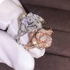 Anel Rosa Tridimensional Entrelaçada em Prata de Lei Anel Diamante Completo Zircônia Branca Temperamento Feminino Joias Elegantes