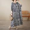 Fat MM Large Size Women's Clothing Literary and Retro Mid-year Mother Clothing Round Neck Sleeveless Loose Extra Large Cotton and Linen Dress Women