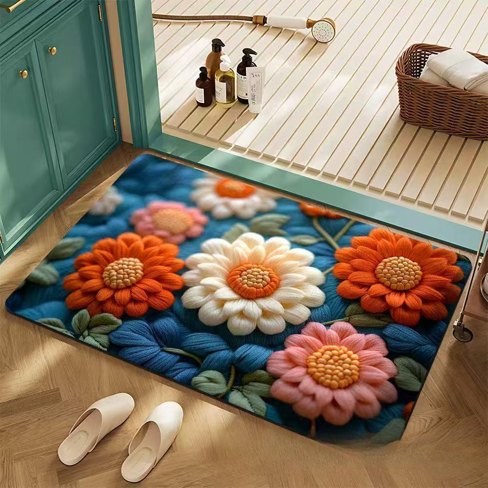 FlowerThickening Bathroom Cashmere Mat Bath Non-slip Carpets In Wash Basin Bathtub Floor Rug Shower Room Doormat Memory Foam 3D Pad