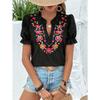 YYFS Moda feminina casual verão primavera flor padrão estampado manga curta blusas e camisas