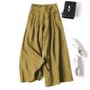 Calças Saia de Linho Algodão Cor Sólida Feminina Calças Largas Alongadas Soltas Calças Casuais Calças de Cintura Elástica Parte Inferior Feminina