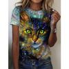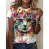 Women's short sleeved top pullover T-shirt 3D digital printed colorful cat pattern pullover shirt