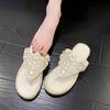Pearl decorative toe sandals 2025 summer new straw platform flip-flops women's shoes