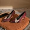 B temperament pointed head rivet bow high heels women's thin heel high-end versatile single shoes spring and autumn women
