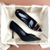 A metal buckle black velvet flat shoes women's summer soft sole new versatile pointed suede