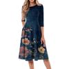 Women's Casual Fashion Round Neck Three-quarter Sleeve Floral Print Midi Dress