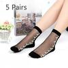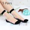 5 Pairs of Women's Spring and Summer Thin Flower Anti Silk Clear Cotton Soles In The Tube Socks